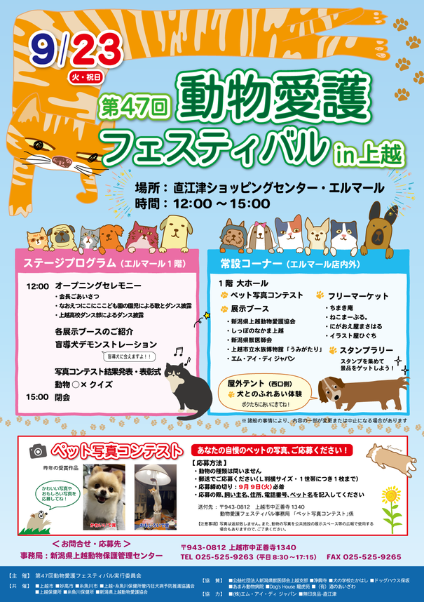 令和7年9月23日(祝)、第47回 動物愛護フェスティバル in上越 を直江津ショッピングセンター